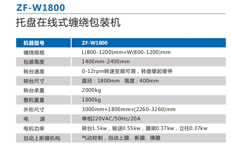 规格型号:ZF-W1800